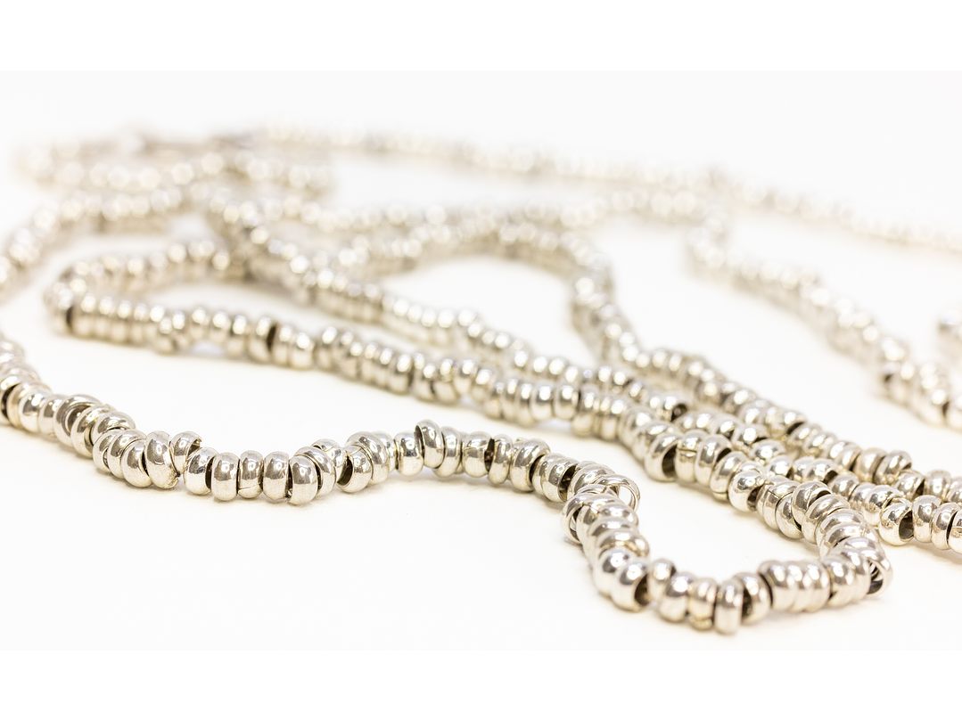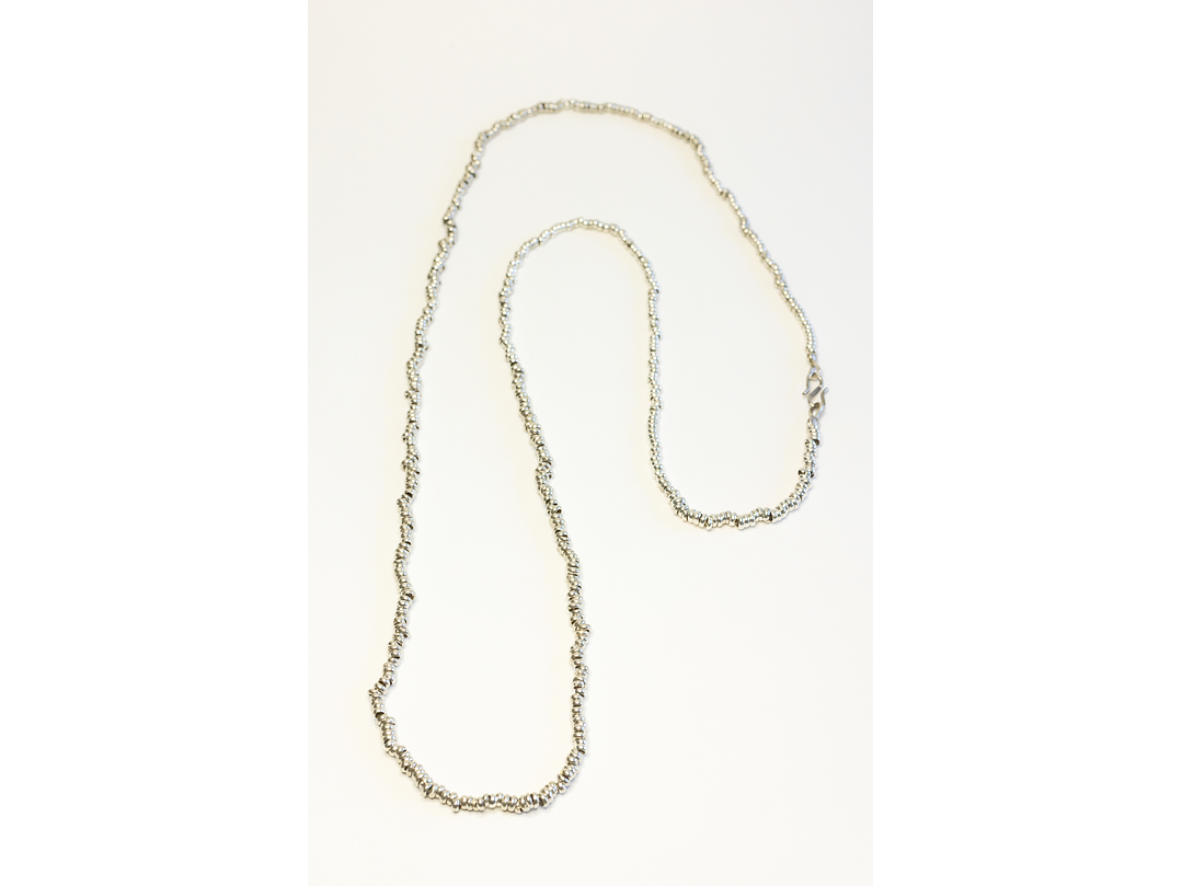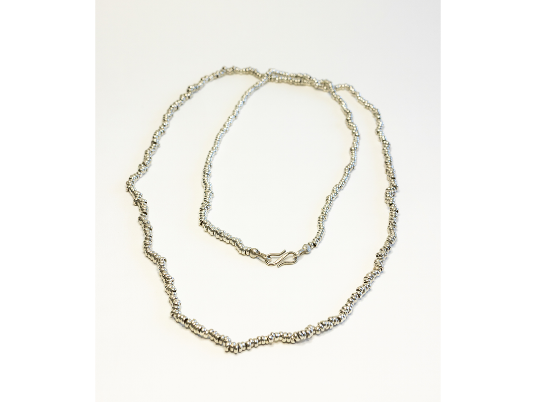 Collar mostacillas plata 975. Largo 90 cm.